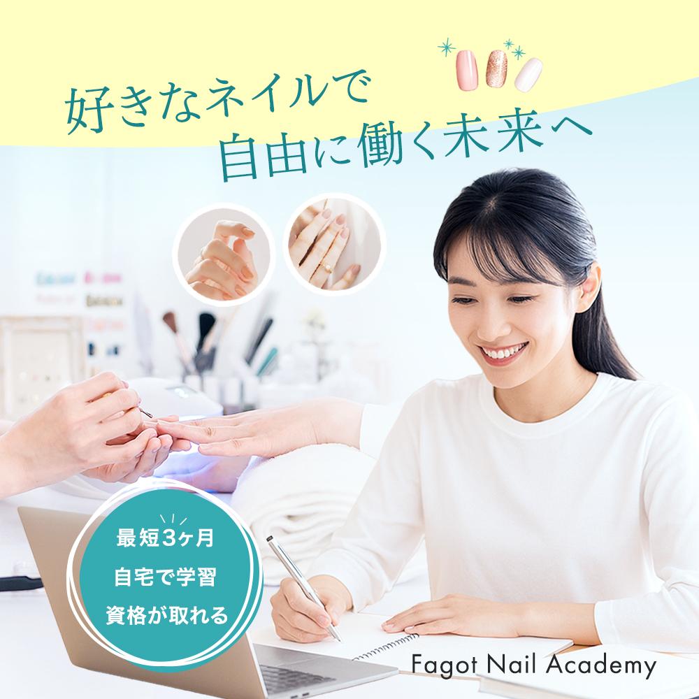 子育て中のママさんやこれから自立を考えている方々に向けた、自分の自由な時間を使ってオンライン・ライブ・対面のハイブリット型の学び方で最短で3ヶ月でJNECネイリスト技能検定が取得できるファゴ・ネイルアカデミーを開校します。